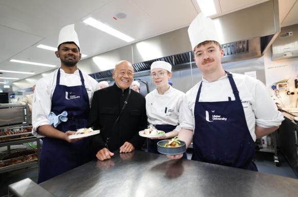 Dr Laura Wells, Lecturer, International Hospitality Management at Ulster University said: “It was an honour to host Ken Hom at Ulster University and introduce him to our talented Culinary Arts Management and International Hospitality Management students. Within the Department for Hospitality Tourism and Events Management, we seek to create immersive learning experiences that truly inspire and enrich our students and fuel their passion for the industry. It was fantastic to hear directly from Ken, a world-renowned chef and TV personality, about his own career path and his distinct philosophy around the role of food as a catalyst for change.”