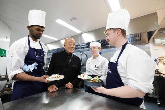 Ken Hom CBE, legendary chef and celebrated TV personality, has hosted an evening dinner and Chinese cuisine masterclass at the Academy Restaurant in Belfast in partnership with Ulster University Culinary Arts Management and International Hospitality Management students.