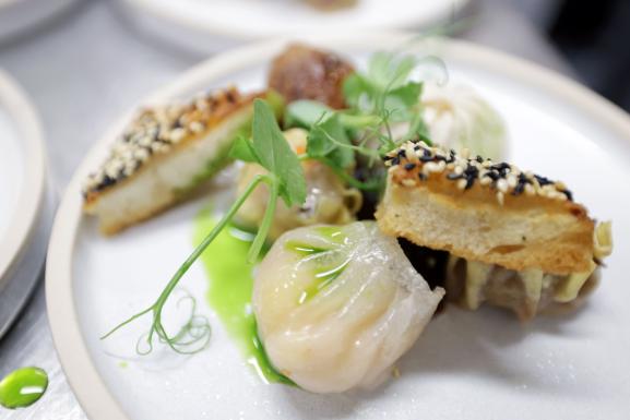 In a set menu designed by Mr Hom, guests enjoyed a roast rack of lamb with Asian-style marinade, chicken & sundried tomato spring rolls and steamed salmon in Chinese cabbage.